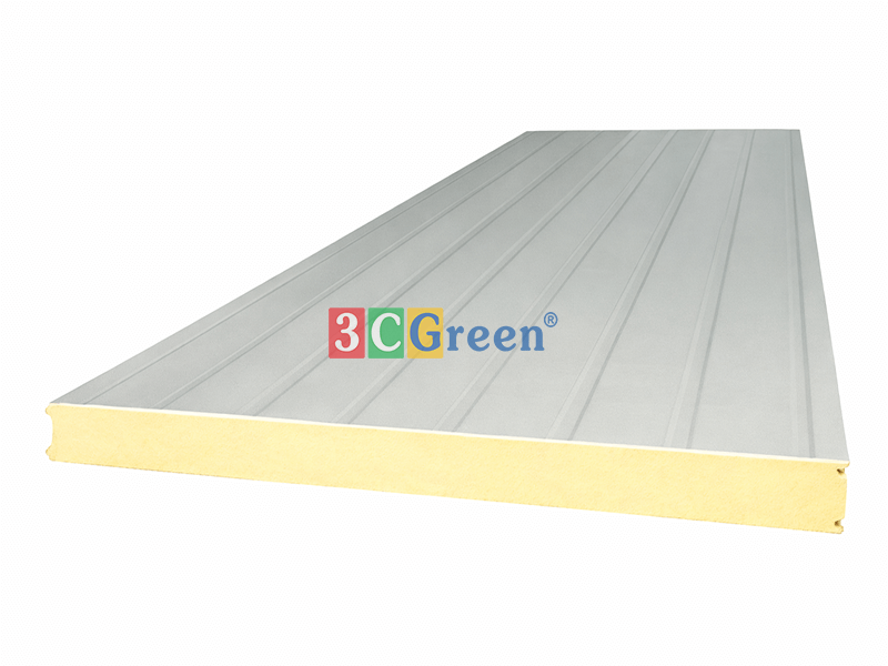 Tấm Panel lõi PU 3 lớp, 2 lớp ngoài tole mạ màu dày 0.35mm, lớp giữa bằng PU tỷ trọng 40kg/m3, liên kết hèm tiêu… -